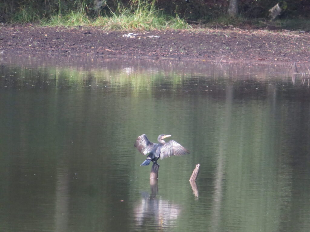羽を広げて羽を乾かしているのか、日光浴をしているようでした。