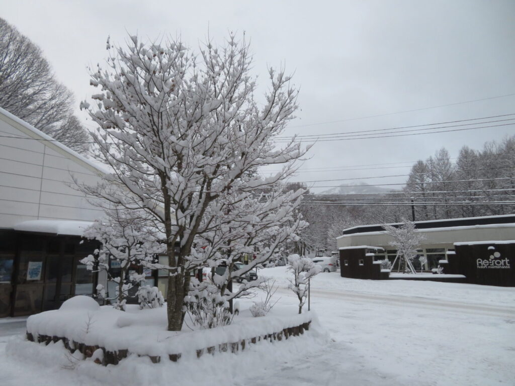 管理事務所前今朝までに 約22cmほどの降雪がありました。