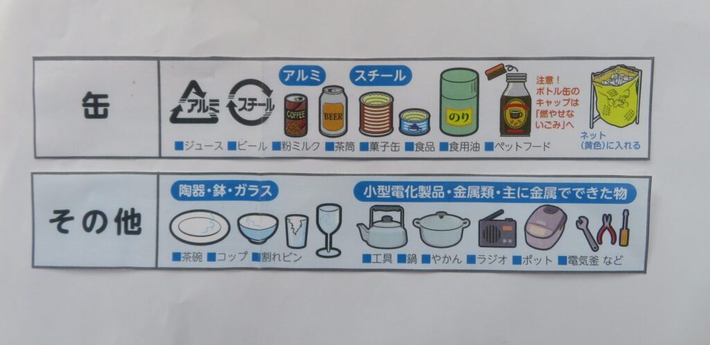 その他・・・金属類に関しましては町の指定袋(燃やせないごみ袋)に入れてください。